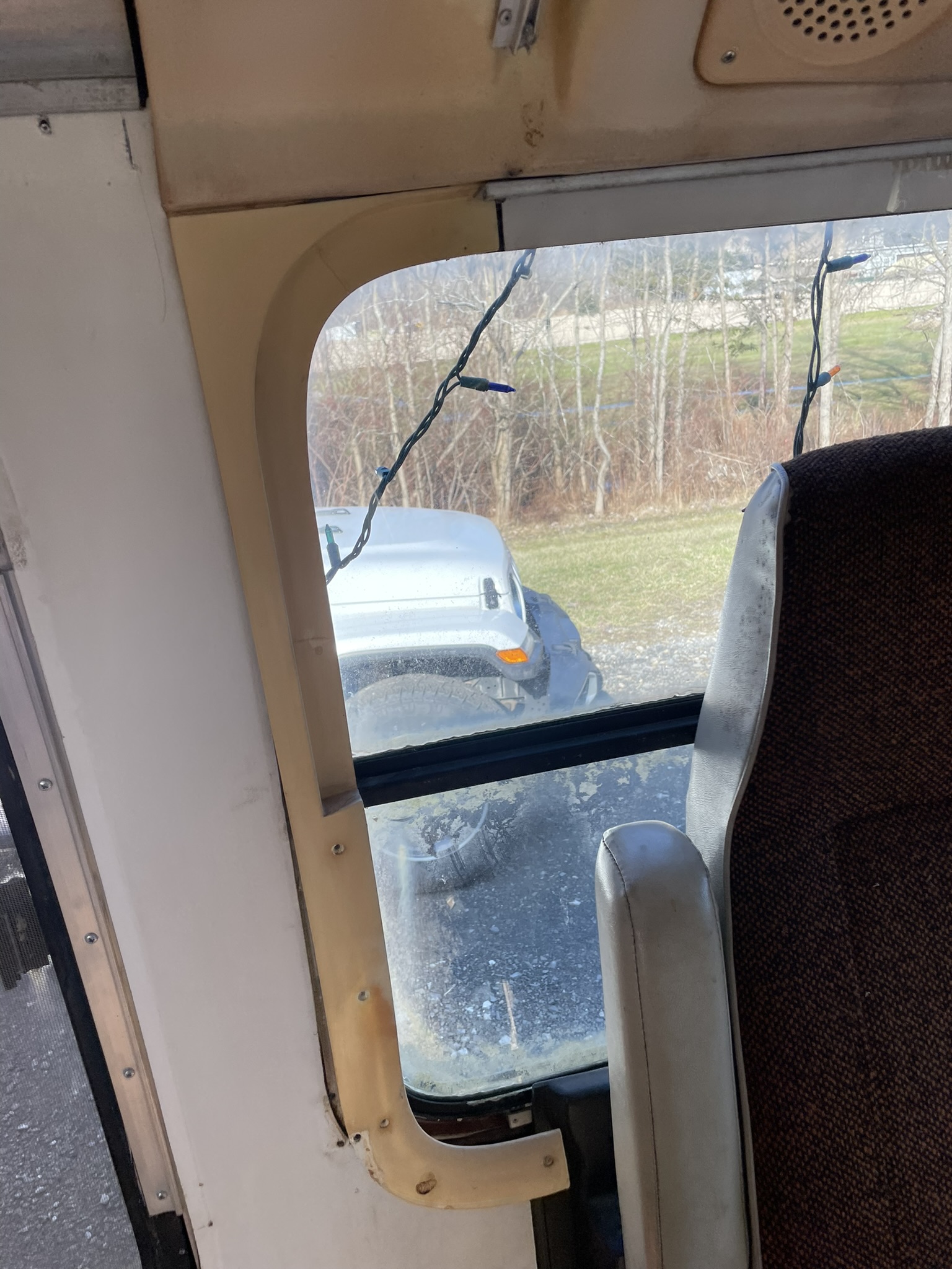 Notice where the bunk bed support arm covered the cockpit window trim a bit – GMC quality 😁